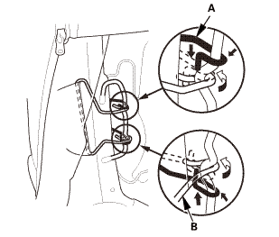 Install the harness (A) through the hole (B).